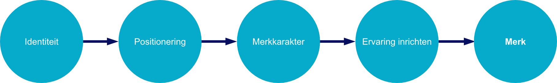 Omdat het bouwen van een merk nog steeds die vier pijlers van identiteit, positionering, merkkarakter en inrichting nodig heeft, nemen wij deze volgorde over, tenzij we in een traject zitten waarin de focus op een van deze pijlers ligt.