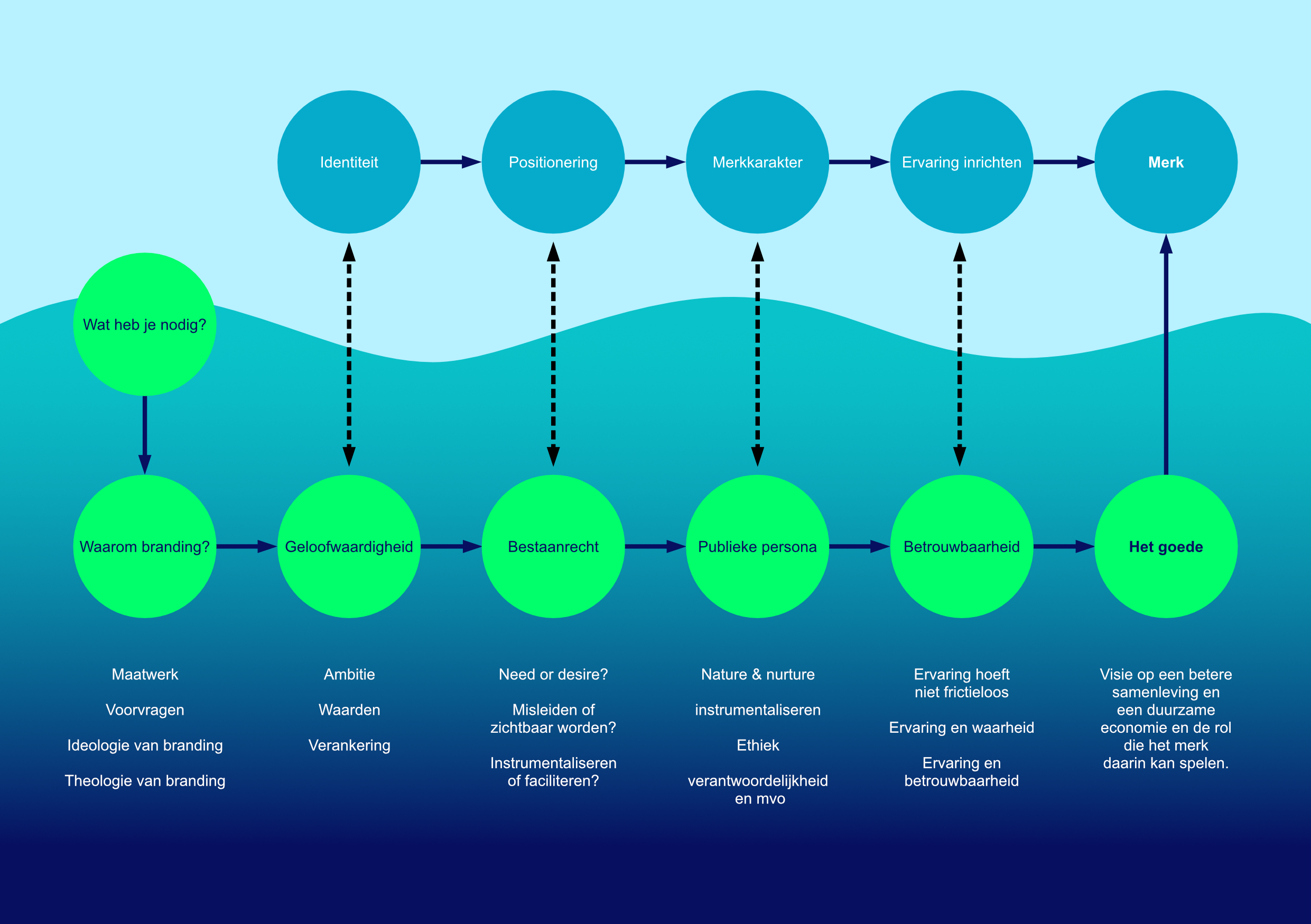Tegenover elke pijler in merkstrategie staat een verdiepend onderwerp dat ons uitnodigt dieper te graven. Zo krijgen we oog voor de verdiepende onderwerpen.